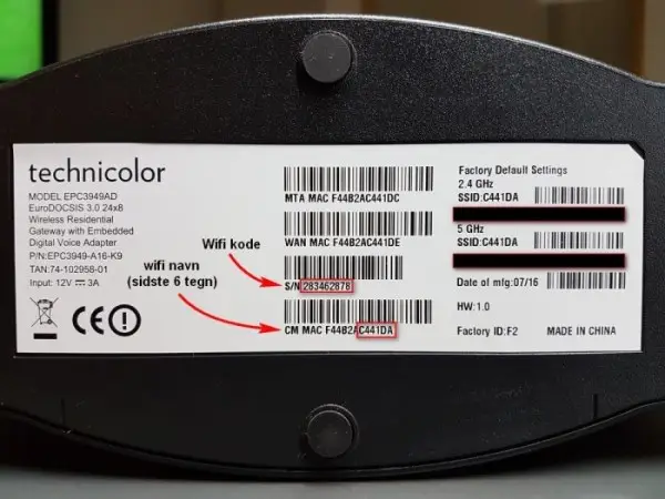 Du finder adgangsoplysninger til wifi (trådløs) i bunden af dit modem eller på den medfølgende kasse.